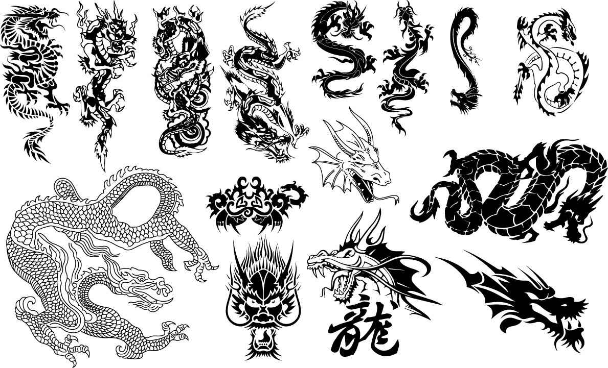 Oriental dragons silhouettes
