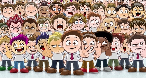 Create any face and expression easily with this complete package. Head, hair, mouth, eye, arms, clothes, position can be mixed together for near infinite possibilities. Or you can choose one of the 31 ready made cartoon characters. Ideal to make a fun manga vector avatar for instance.